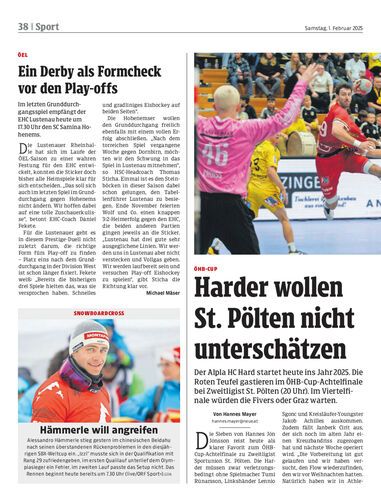 Im letzten Grunddurchgangsspiel empfängt der EHC Lustenau heute um 17.30 Uhr den SC Samina Hohenems.