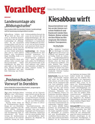 Bauunternehmer wollen an der Grenze zwischen Feldkirch und Rankweil wieder Kies fördern. Bisher wälzen sie ihre Pläne im Hintergrund. Die Grünen fordern Transparenz.