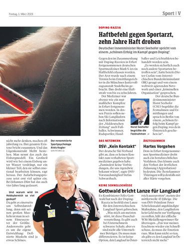 Deutscher Innenminister Horst Seehofer spricht von einem „schönen Erfolg im Kampf gegen Doping“.
