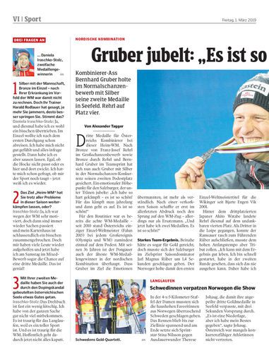 Kombinierer-Ass Bernhard Gruber holte im Normalschanzenbewerb mit Silber seine zweite Medaille in Seefeld. Rehrl auf Platz vier.