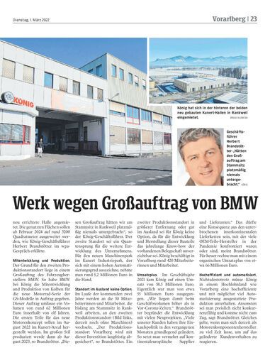 Rankweiler Motorenkomponentenhersteller König nimmt schrittweise zweites Werk im Kunert Industriepark in Meiningen in Betrieb. Grund dafür ist ein 62-Millionen-Euro-Auftrag.
