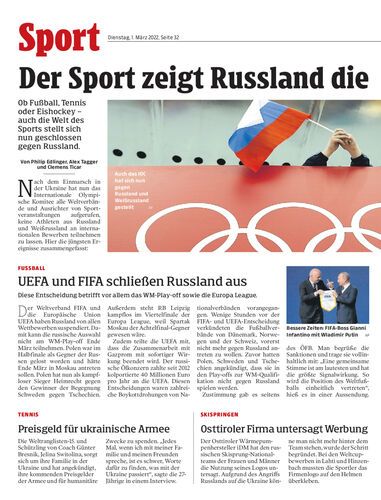Ob Fußball, Tennis oder Eishockey – auch die Welt des Sports stellt sich nun geschlossen gegen Russland.