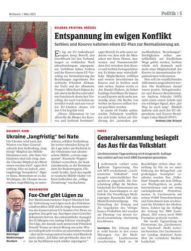 Liechtensteiner Tageszeitung wird eingestellt. Auflage
