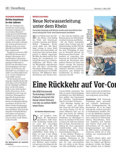 Die RSB Formwork Technology GmbH in Fußach erwartet für heuer einen Umsatz von bis zu sieben Millionen Euro.