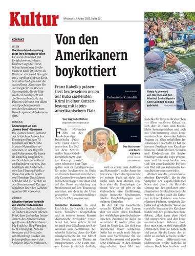 Franz Kabelka präsentiert heute seinen neuen auf Kuba spielenden Krimi in einer Konzertlesung mit lateinamerikanischem Flair.