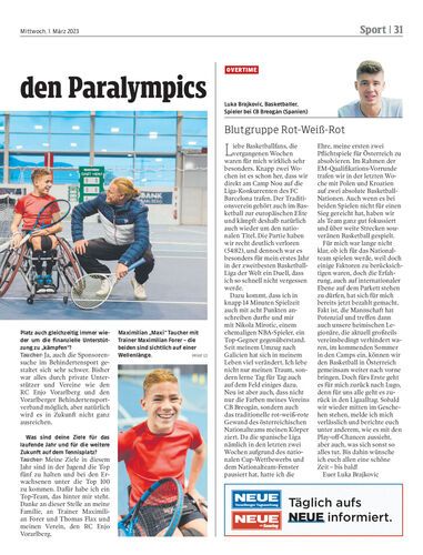 Der Hohenemser Behindertensportler Maximilian Taucher (15) hat nach dem Gewinn des Jugend-WM-Titels Anfang diesen Jahres noch große Ziele und ist derzeit bei einem Turnier in den Niederlanden im Einsatz.