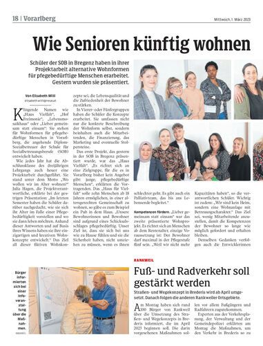 Schüler der SOB in Bregenz haben in ihrer Projektarbeit alternative Wohnformen für pfegebedürftige Menschen erarbeitet. Gestern wurden sie präsentiert.