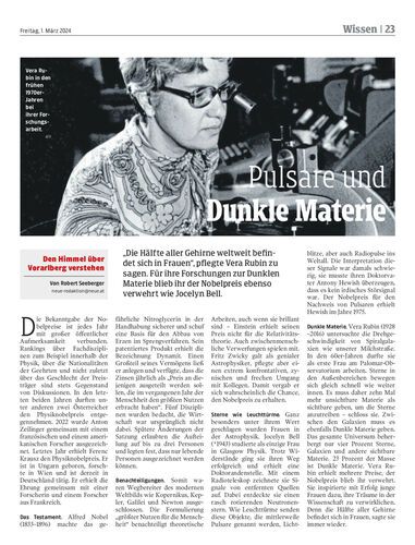 „Die Hälfte aller Gehirne weltweit befindet sich in Frauen“, pflegte Vera Rubin zu sagen. Für ihre Forschungen zur Dunklen Materie blieb ihr der Nobelpreis ebenso verwehrt wie Jocelyn Bell.
