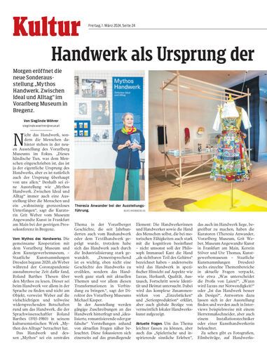 Morgen eröffnet die neue Sonderausstellung „Mythos Handwerk. Zwischen Ideal und Alltag“ im Vorarlberg Museum in Bregenz.