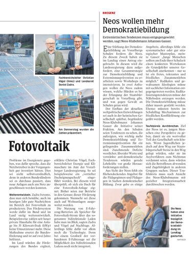 Extremistischen Tendenzen muss entgegengewirkt werden, sagt Neos-Klubobmann Johannes Gasser.