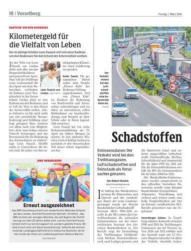 Der 14-jährige Schüler Leon Paasch will mit einer Radtour um den Bodensee für den Schutz der Artenvielfalt werben.