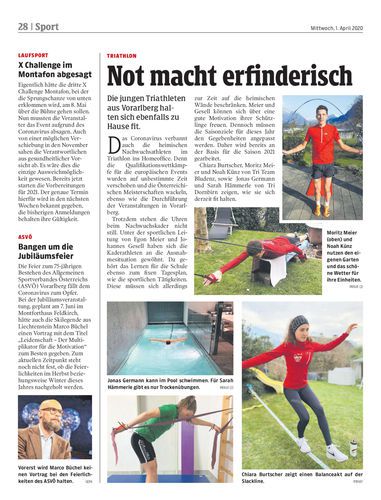 Die jungen Triathleten aus Vorarlberg halten sich ebenfalls zu Hause fit.