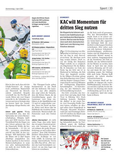 Die Klagenfurter können sich heute in der Halbfinalserie gegen Salzburg drei Matchpucks sichern. Mental sind die Rotjacken nach dem dramatischen Spiel zwei vom Dienstag zweifelsohne obenauf.