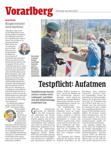 726 Personen waren bis gestern Nachmittag aktiv positiv – am meisten in Dornbirn, wo es über 100 waren.