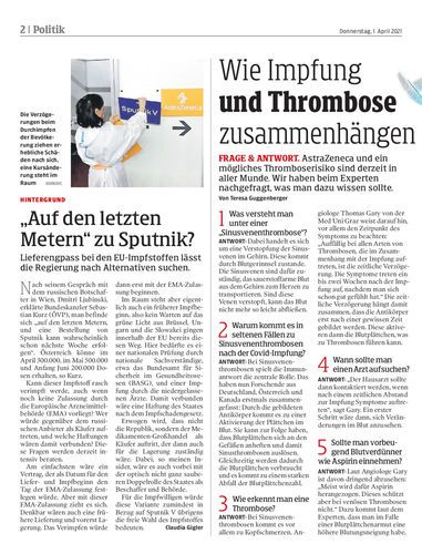 Frage & ANtwort. AstraZeneca und ein mögliches Thromboserisiko sind derzeit in aller Munde. Wir haben beim Experten nachgefragt, was man dazu wissen sollte. Von Teresa Guggenberger