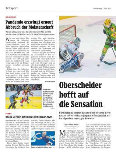 Für Lustenau startet das zur Best-of-three-Serie mutierte Viertelfinale gegen die Pustertaler am heutigen Donnerstag in Bruneck.