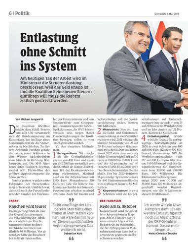 Am heutigen Tag der Arbeit wird im Ministerrat die Steuerentlastung beschlossen. Weil das Geld knapp ist und die Koalition keine neuen Steuern einführen will, muss die Reform zeitlich gestreckt werden.