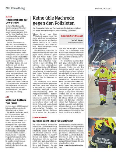 Ein Pensionist hatte auf Facebook ein Disziplinarverfahren für einen Polizisten wegen „Misshandlung“ gefordert.