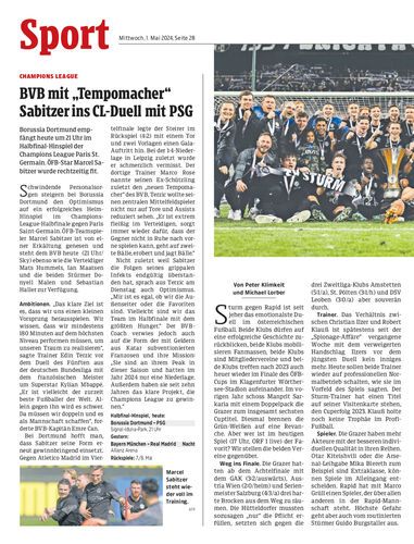 Borussia Dortmund empfängt heute um 21 Uhr im Halbfinal-Hinspiel der Champions League Paris St. Germain. ÖFB-Star Marcel Sabitzer wurde rechtzeitig fit.