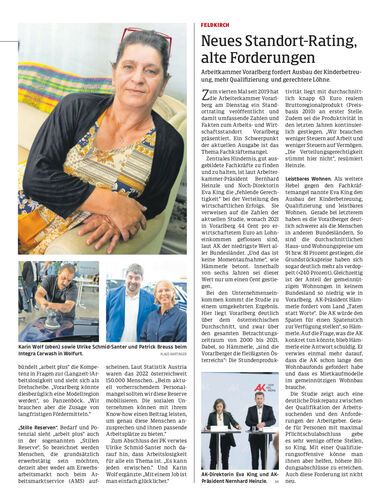 Arbeitkammer Vorarlberg fordert Ausbau der Kinderbetreuung, mehr Qualifizierung und gerechtere Löhne.