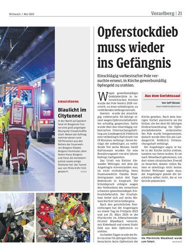 Einschlägig vorbestrafter Pole versuchte erneut, in Kirche gewerbsmäßig Opfergeld zu stehlen.