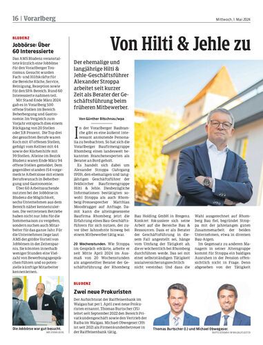 Der ehemalige und langjährige Hilti & Jehle-Geschäftsführer Alexander Stroppa arbeitet seit kurzer Zeit als Berater der Geschäftsführung beim früheren Mitbewerber.