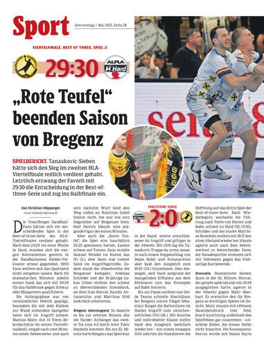 Spielbericht. Tanaskovic-Sieben hätte sich den Sieg im zweiten HLA-Viertelfinale redlich verdient gehabt. Letztlich erzwang der Favorit mit 29:30 die Entscheidung in der Best-of-three-Serie und zog ins Halbfinale ein.