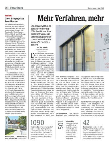Landesverwaltungsgericht Vorarlberg: 2024 deutliches Plus bei Beschwerden in Verwaltungsstrafsachen – bei weiterhin kurzen Verfahrensdauern.