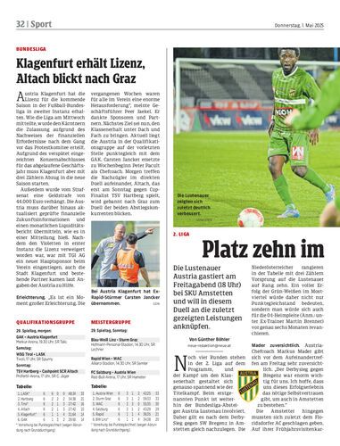 Klagenfurt erhält Lizenz, Altach blickt nach Graz