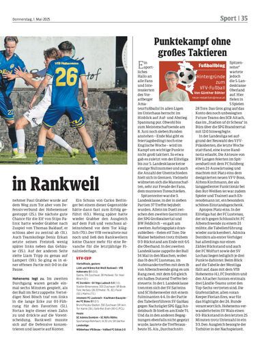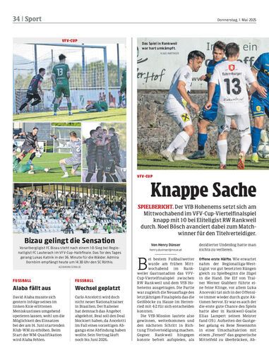 Spielbericht. Der VfB Hohenems setzt sich am Mittwochabend im VFV-Cup-Viertelfinalspiel knapp mit 1:0 bei Eliteligist RW Rankweil durch. Noel Bösch avanciert dabei zum Matchwinner für den Titelverteidiger.