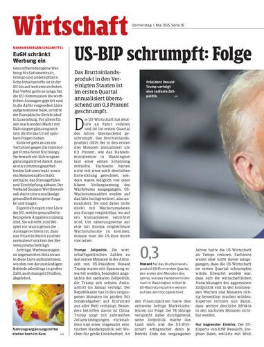 Das Bruttoinlandsprodukt in den Vereinigten Staaten ist im ersten Quartal annualisiert überraschend um 0,3 Prozent geschrumpft.
