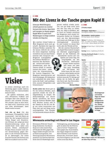 Schwarz-Weiß Bregenz erhielt gestern in zweiter Instanz die Lizenz. Sportlich soll morgen zu Hause gegen Rapid Wien II nach fünf Niederlagen in Folge endlich wieder ein Sieg her.