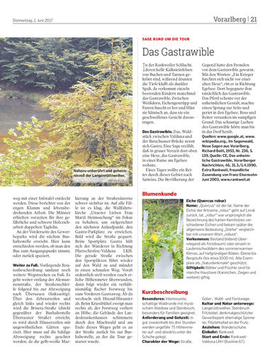 Die Geschichtenerzählerin Hertha Glück begibt sich diesmal auf eine Wanderung ab Rankweil-Valduna zum Waldsee, weiter zum Steinbruch und über Gastra zurück.