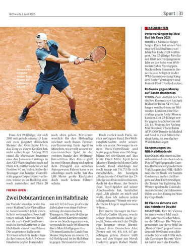 Holger Rune steht in Paris als erster Däne in der Profi-Ära in einem Grand-Slam-Viertelfinale. Dort trifft er heute auf Casper Ruud. Carlos Alcaraz ist draußen.