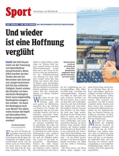 Essay. Der SCR Altach steht vor der Trennung von Sportdirektor Georg Festetics. Beim SCRA machen sie den Tiroler, der erst im November sein Amt antrat, hauptverantwortlich für das schlechte Fürhjahr. Damit stehen die Altacher vor dem nächsten Neubeginn. Doch wenn regelmäßig Neubeginne ausgerufen werden - ist dann ein Neubeginn noch was Neues? Vor allem, wenn immer die Köpfe auf denselben Positionen ausgetauscht werden?