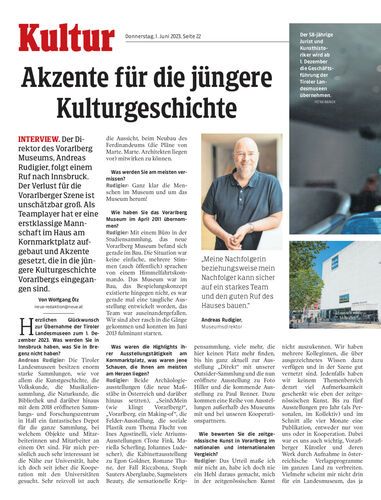 Interview. Der Direktor des Vorarlberg Museums, Andreas Rudigier, folgt einem Ruf nach Innsbruck. Der Verlust für die Vorarlberger Szene ist unschätzbar groß. Als Teamplayer hat er eine erstklassige Mannschaft im Haus am Kornmarktplatz aufgebaut und Akzente gesetzt, die in die jüngere Kulturgeschichte Vorarlbergs eingegangen sind.