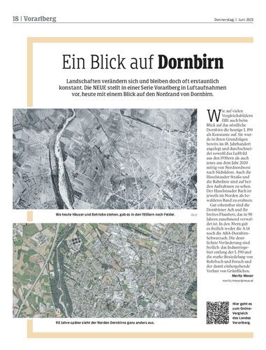 Landschaften verändern sich und bleiben doch oft erstaunlich konstant. Die NEUE stellt in einer Serie Vorarlberg in Luftaufnahmen vor, heute mit einem Blick auf den Nordrand von Dornbirn.