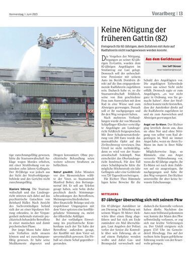 Freispruch für 82-Jährigen, dem Zufahren mit Auto auf Radfahrerin nicht nachgewiesen werden konnte.