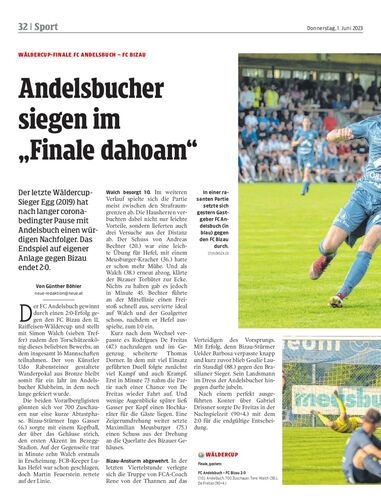 Der letzte Wäldercup-Sieger Egg (2019) hat nach langer coronabedingter Pause mit Andelsbuch einen würdigen Nachfolger. Das Endspiel auf eigener Anlage gegen Bizau endet 2:0.