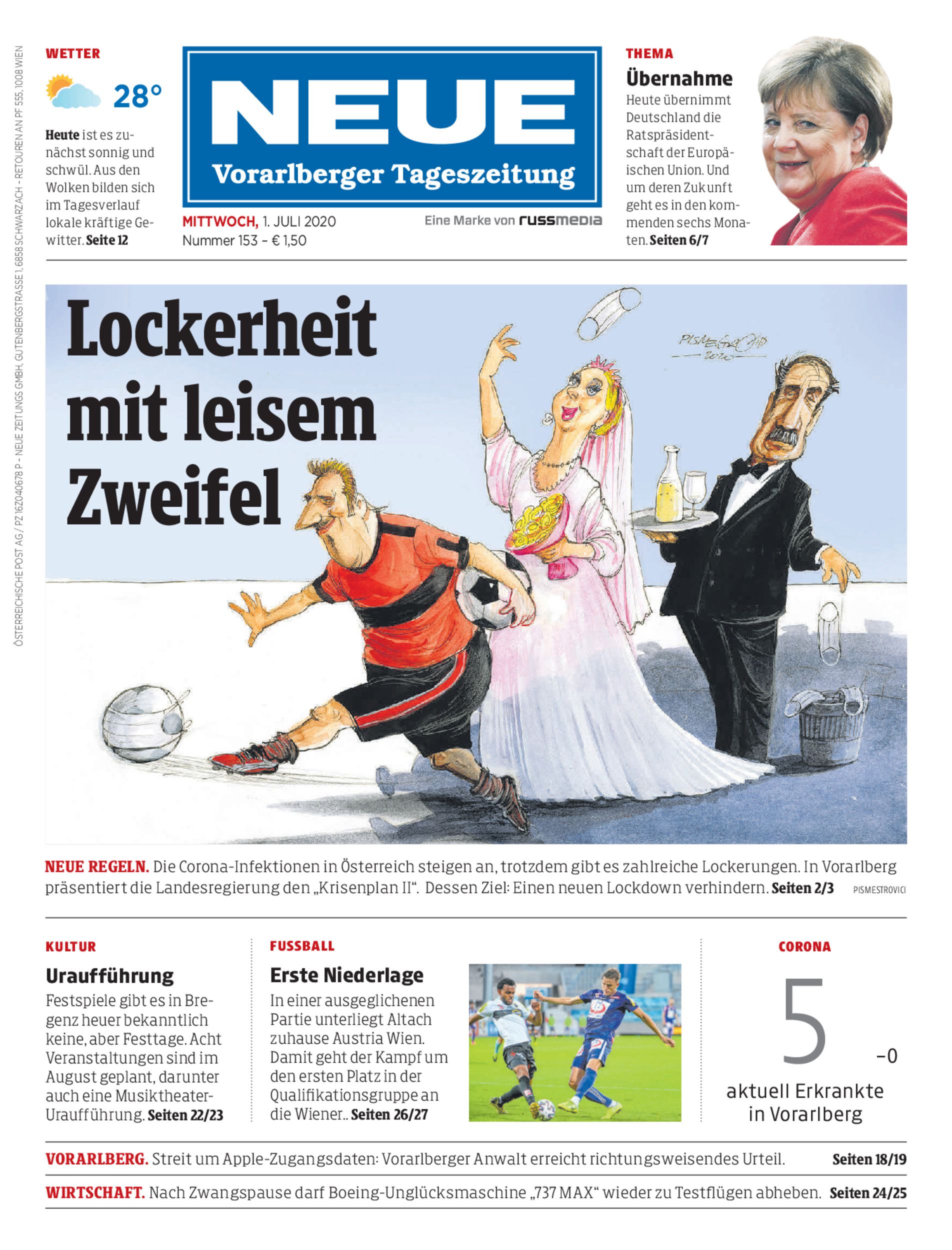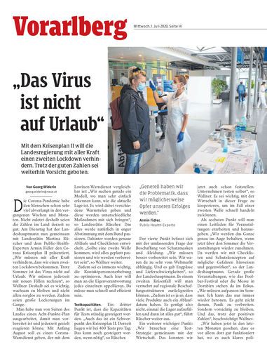 Neue Regeln. Die Corona-Infektionen in Österreich steigen an, trotzdem gibt es zahlreiche Lockerungen. In Vorarlberg präsentiert die Landesregierung den „Krisenplan II“. Dessen Ziel: Einen neuen Lockdown verhindern. Seiten 2/3 PismestrovicI
