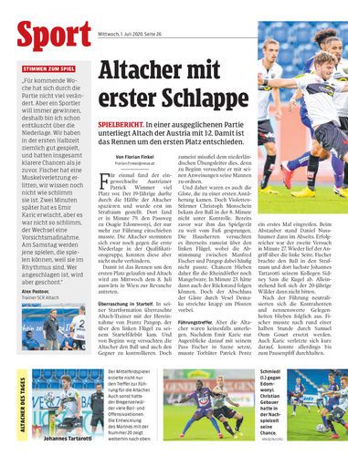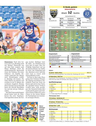 Spielbericht. In einer ausgeglichenen Partie unterliegt Altach der Austria mit 1:2. Damit ist das Rennen um den ersten Platz entschieden.