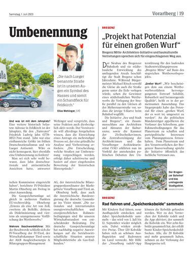 Bregenz Mitte: Architekten-Initiative und baukulturelle Vertretungen sprechen sich für eingeschlagenen Weg aus.