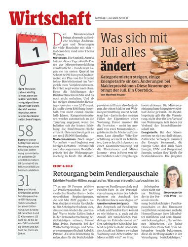 Kategoriemieten steigen, einige Energietarife sinken, Änderungen bei Maklerprovisionen. Diese Neuerungen bringt der Juli. Ein Überblick. Von Manfred Neuper
