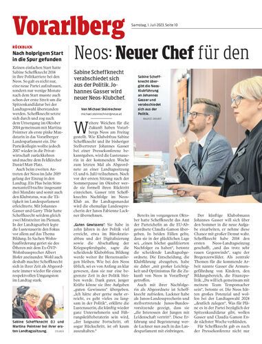 Sabine Scheffknecht verabschiedet sich aus der Politik. Johannes Gasser wird neuer Neos-Klubchef.