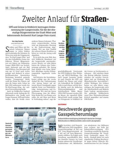 SPÖ und Grüne in Feldkirch bentragen Umbenennung der Luegerstraße, für die der ehemalige Bürgermeister der Stadt Wien und bekennende Antisemit Karl Lueger Pate stand.