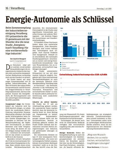 Beim Sommerempfang der Industriellenvereinigung Vorarlberg (IV) präsentierte die IV gemeinsam mit der Illwerke vkw die neue Studie „Energiezukunft Vorarlberg: Für eine wettbewerbsfähige Industrie“.