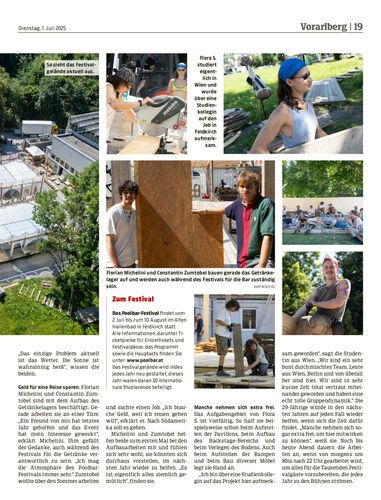 Studenten und andere junge Menschen aus dem ganzen deutschsprachigen Raum arbeiten mit Begeisterung am letzten Feinschliff, bevor das Poolbar-Festival zum 32. Mal eröffnet werden kann.