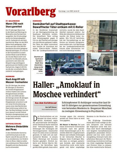 Schizophrener IS-Anhänger versuchte laut Urteil 15-Jährigen zur gemeinsamen Ermordung von betenden Moslems in Bregenzer Moschee zu zwingen: Einweisung in Psychiatrie.
