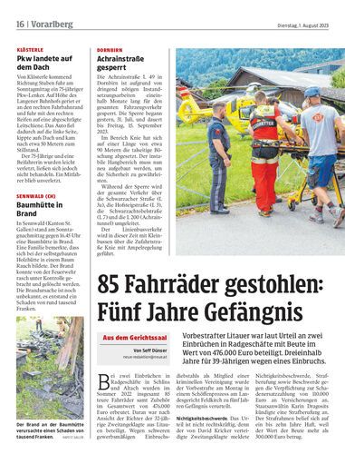 Vorbestrafter Litauer war laut Urteil an zwei Einbrüchen in Radgeschäfte mit Beute im Wert von 476.000 Euro beteiligt. Dreieinhalb Jahre für 39-Jährigen wegen eines Einbruchs.