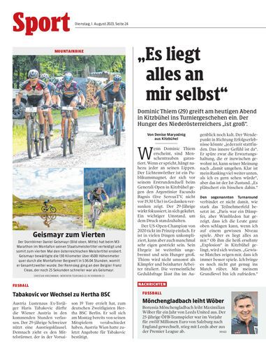 Dominic Thiem (29) greift am heutigen Abend in Kitzbühel ins Turniergeschehen ein. Der Hunger des Niederösterreichers „ist groß“.